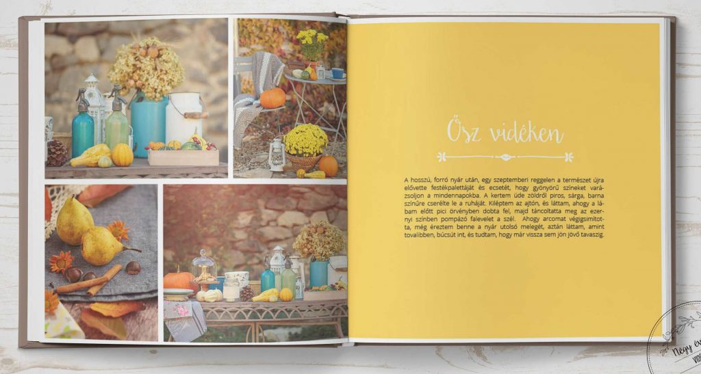 Egy városi lány története, aki hirtelen felindulásból elköltözik a nagymama vidéki házába, megismerkedik a falusi élettel, saját kiskertet gondoz, bútorokat újít fel, vendégeket fogad, és négy évszak leforgása alatt a házból otthont varázsol magának. A könyvben találhatunk az évszaknak megfelelő dekorációs tippeket, vegyszermentes kertészkedéshez tanácsokat, saját kezűleg véghezvihető felújításokat, és rengeteg izgalmas receptet.